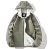 سترة رجالية شتوية من الصوف بغطاء رأس وسحاب مع جيب رقعة وسترة كاجوال