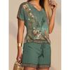 Top Contrast Mid Rise Shorts Female Embroider Hollow out V-neck Short Tops Mid Waist Shorts