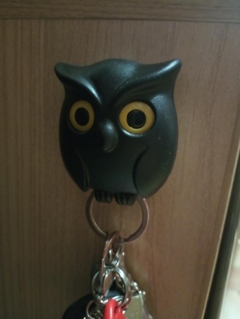 Držák na klíče sova je nejen funkční, ale také dodá vašemu prostoru šarm. Jeho jedinečný design obsahuje magnetickou sovu, která otevírá oči a chrání vaše klíče, když visí. Když klíč nebo kroužek na klíče odeberete, sova automaticky zavře oči. Na vaše hosty zapůsobí tato nová klíčenka, která dokonale odráží vaši osobnost.