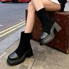 Round-headed Boots In Autumn Winter 2024 Slim Short Boots Suede Metal High-heeled Boots Fashion Boots Women Boots LHX
