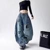 Malovaná graffiti písmena potištěné prané trendy nové široké džíny s osobností a všestranné volné ležérní rovné kalhoty