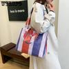 Dámská kabelka Velkokapacitní taška přes jedno rameno Univerzální plátěná taška Pruhovaná ležérní nákupní kabelka
