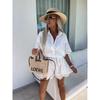 Dámský elegantní krátký overal s klopovým límcem na zavazování, kancelářská móda, jednořadé zapínání, jednobarevný overal, ležérní volný overal s krátkým rukávem