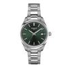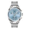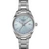 The Tissot PR 100 Quartz Light Blue Dial Ladies Watch T1019101135100 features a stainless steel case with a matching stainless steel bracelet. The fixed stainless steel bezel frames a light blue dial, adorned with luminous silver-tone hands and index hour markers. Minute markers are clearly visible around the outer rim, ensuring accurate timekeeping. This analog watch houses an ETA caliber F05.412 quartz movement, protected by a scratch-resistant sapphire crystal. The pull/push crown allows for easy adjustments, and the solid case back provides durability. With a round case shape and dimensions of 36 mm in size and 9 mm in thickness, it is designed for both elegance and comfort. The watch is water-resistant up to 100 meters (330 feet), making it suitable for casual wear as well as active lifestyles. Additionally, the date display at the 6 o'clock position adds a practical feature to this stylish piece.