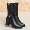 Fashion Woman Winter Warm Plus Fleece Thick Heel Anti-slip Boots Soft Leather Middle Tube Mother Comfort Cotton Mother Shoes