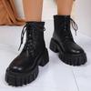 Fashion Gothic Chunky Platform Motorcycle Boots Women Autumn Winter Punk Combat Boots Woman Thick Bottom PU Leather Ankle Botas Mujer