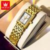 OLEVS Diamond Women Watch Original Leather Strap Waterproof Ladies Dress Wristewatch Luxury Elegant Square Women's Watches
