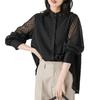Shoulder slit open ruffled revealing round with exposed revealing easy machine beautiful autumn puff polyester black [J-Scott] blouse, shoulder,