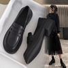 Small leather shoes women's loafers 2024 new thick heel British style versatile professional medium heel soft leather one-pedal work shoes