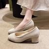 Sweet Women's Low Block Heels Pumps Shoes Big Size 48 Lolita Loafers Shoes Beige black Flock Short Heeled Office Shoes For Girls
