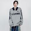 Women's Retro Striped Color Block Pullover Sweatshirt with Letter Embroidery - Casual College Style