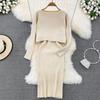 Women Autumn Winter Knit Set Slim Solid Color Two Piece All Match Crop Sweater Hip Dress For Ladies