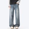American Style Grinding White Gradient Washing Jeans Men's Wind High Street Loose Straight Wide-leg Pants