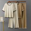 Summer Suit Polo Collar Short Sleeved Fashionable Casual Loose High Waisted Knitted Two-piece Set