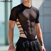 INCERUN Men Sleeveless Stitching Mesh Sheer Transparent Jumpsuits Underwear