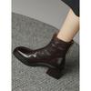 Washed cowhide retro autumn and winter knight boots women's medium boots British thick heel square head leather side zipper Martin boots