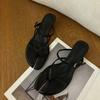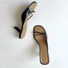 Sheepskin version~ Genuine leather one-word cat heel sandals women's summer foot pinching herringbone cool slippers high-heeled sandals