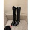 Cowhide Small Gold Coins Skinny Knight Boots Women's Flat Bottom But Knee Long Boots High Boots