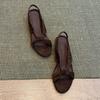 Sheepskin version retro round head open-toed cross with wedge sandals women's versatile simple temperament one-word shoes