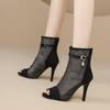 Fashion 2025 Sexy Female Sandals Peep Toe Flock Suede Breathable Mesh Zipper Belt Buckle Thin High Heels 10cm Plus Size