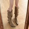 Suede pointed pleated piled boots women's 2025 autumn and winter new removable two-wear thin heel boots high heel short boots