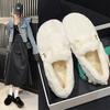 Real wool women's shoes autumn and winter new one-pedal Mao Mao shoes warm low-top flat single shoes women's white shoes