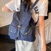 High Quality Korean Style Retro Backpacks Drawstring Design Flat Stripe Bookbags Large Capacity Soft Tote Bags Unisex