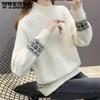 Autumn Winter Women's Half Turtleneck Sweater Loose Thick Pullover Knitted Top Jacquard Elastic Knitted Top Jumper.