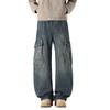 Working Three-dimensional Large Pocket Jeans for Men's Autumn and Winter New Style Hong Kong Feng Shui Washing Elastic Waist Wide-leg Pants