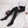 Spring Autumn Winter Women's Gray Vertical Stripe Fleece Lined Thick Warm Outer Wear Pantyhose & Black Compression Slimming Leggings