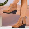 Fashion Women's Retro Platform Wedge Heel Ankle Boots Autumn Winter Cross Strap Casual Shoes Woman Plus Size Pu Leather High Heel Boots