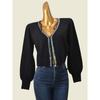 Starry Hot Rhinestone V-neck Knitted Cardigan Women's Foreign Trade Original Order Pure Color Single-Breasted Thin Long Sleeve Outer Wear Blouse
