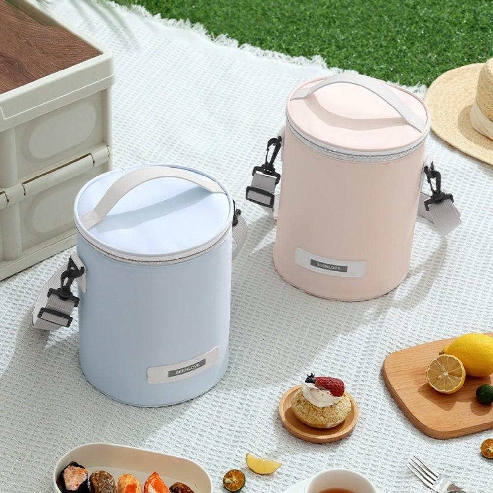 Large Capacity Carrying Cooler Bag Waterproof Office Lunch Tote Casual Cylinder Lunch Bag Outdoor