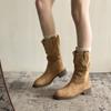 Maillard Martin boots women's summer and autumn new thick-soled medium tube western cowboy short boots stacked knight boots