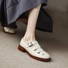 Fashion Women's New Spring and Autumn Round Head Thick Bottom Hollow Metal Belt Buckle Middle Heel Large Roman Casual Single Shoe