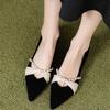 Fashion Japanese Style Lolita Block Heel Woman Pumps with Bow Medium Heels Chunky Pointed Toe Mary Jane Shoes for Women Gothic Pearl Y2k