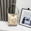 Original design large-capacity canvas bag black and white simple retro flower shoulder bag casual versatile literary bucket bag