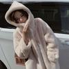 Autumn and winter imitation mink fur coat cute bear ears plush thickened loose medium and long coat women
