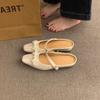 Fashion Square Toe Shoes Woman's Slippers String Bead Slides Block 2025 Cover Bling Scandals Mary Janes Square heel Cover Toe String Bea