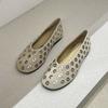 Sheepskin version~ niche design round head leather shallow mouth flat sole shoes fairy style temperament rhinestone Mary Jane shoes