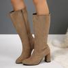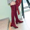 FOREADA Women Knee High Long Boots Round Toe Block High Heels Stretch Gogo Boots Ladies Fashion Shoes Autumn Winter Purple 43
