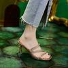 8Cm sexy rhinestone patent leather open-toed high-heeled cool slippers for women after 2025, empty sandals and thin-heeled half-slippers