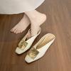 Slippers Women's Sandals Metal Square Buckle Premium Square Head Half Slippers Women's Retro Flat Bottom Bag Head Cool Slippers
