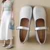 Round head shallow mouth flat bottom mesh single shoes 2025 summer new one word with breathable hollow Mary Jane shoes