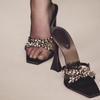 2025 Summer New Square Toe Cross Diamond High Heels Fashionable Ladies Black Satin Stiletto Sandals Sexy Ladieshigh Heel Sandals
