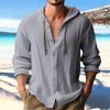 New Style Spring and Summer Men's Hooded Inch Shirt Solid Color Cotton Linen Men's Casual Long-sleeved Top