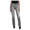Сверхвысокая талия и узкие штанины придают современный силуэт, отсылая к эпохе бунтарства.