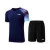 Li-Ning Gradient V-Neck Comfortable Short Sleeve Drawstring Elastic Waist Quick-Dry Shorts Casual Set Women sets Deep-Purple Blue AATV014-3