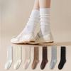 Female Spring and Autumn Pure Color Pure To Sweet Splicing Pleat Fold Wear Long Leg Socks