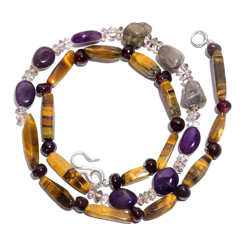 Natural Tiger Eye Amethyst Labradorite Gemstone Smooth Beads Necklace 17" UB4905 UB-4905